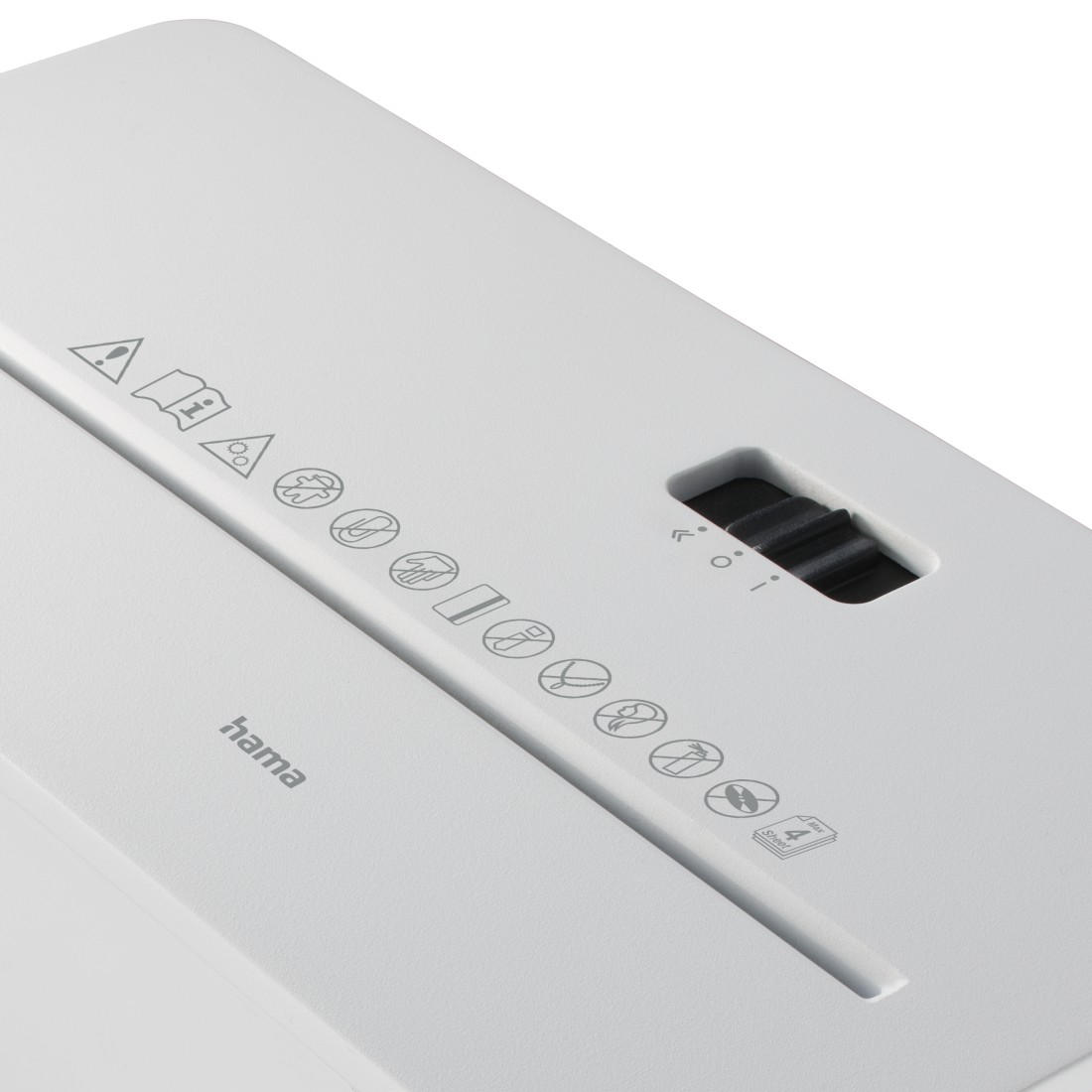 • Keresztirányú iratmegsemmisítő, egyszerre legfeljebb 4 db DIN A4 (80 g/m²) papírlap megsemmisítésére és műanyag kártyák megsemmisítésére is alkalmas