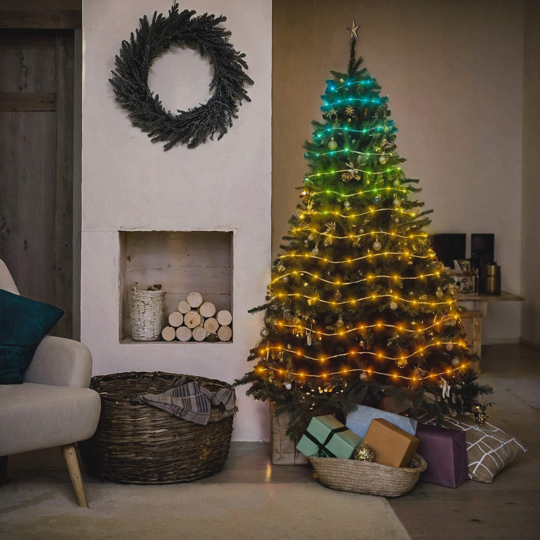 - Az intelligens RGBIC chipnek köszönhetően a fényfüzér egyszerre több színben is ragyoghat
