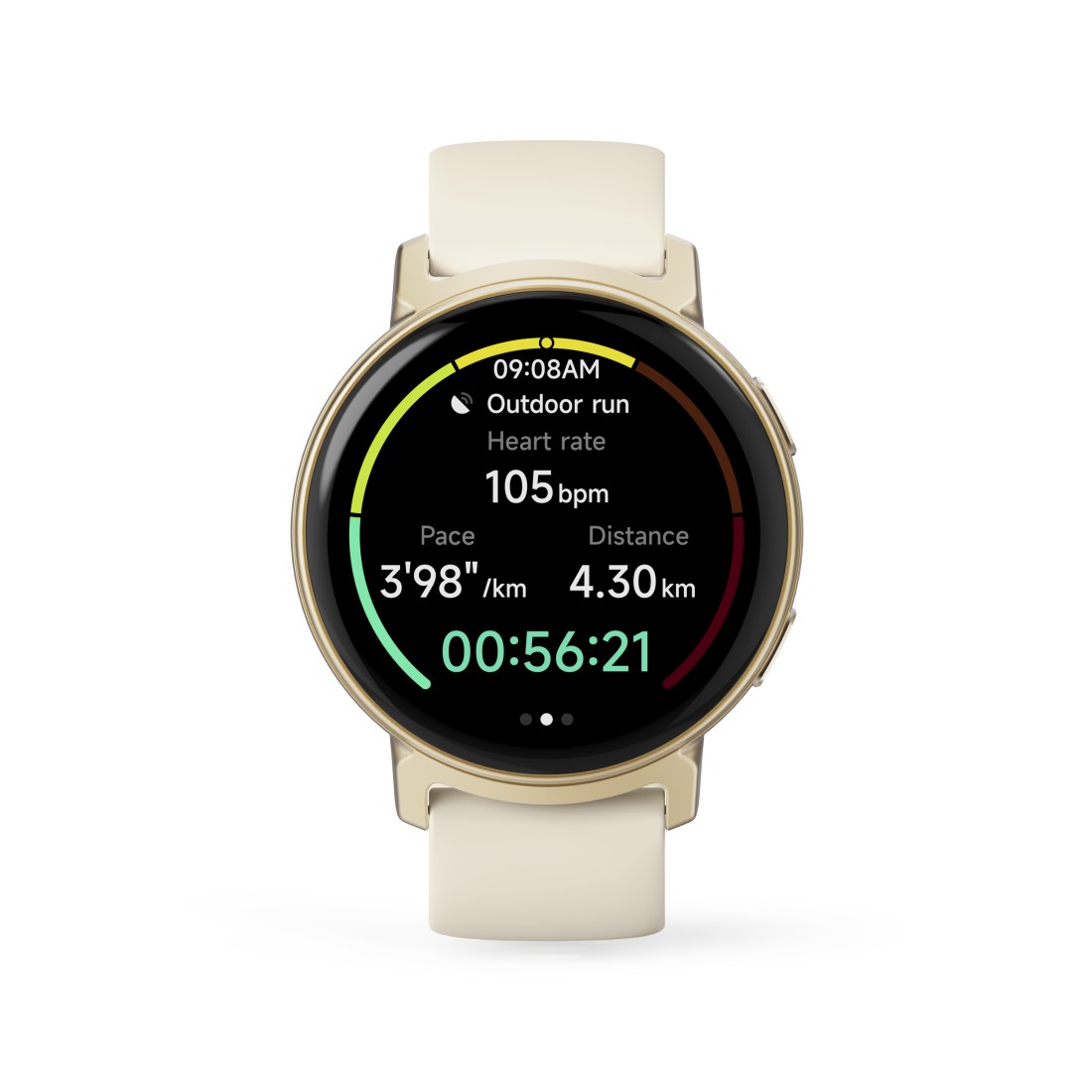 - Részletes edzésadatok: maximális oxigénfelvétel (VO2max), aerob edzéshatás és pulzusváltozékonyság, testenergia-érték, valamint a hatékony edzéshez ajánlott pihenőidő