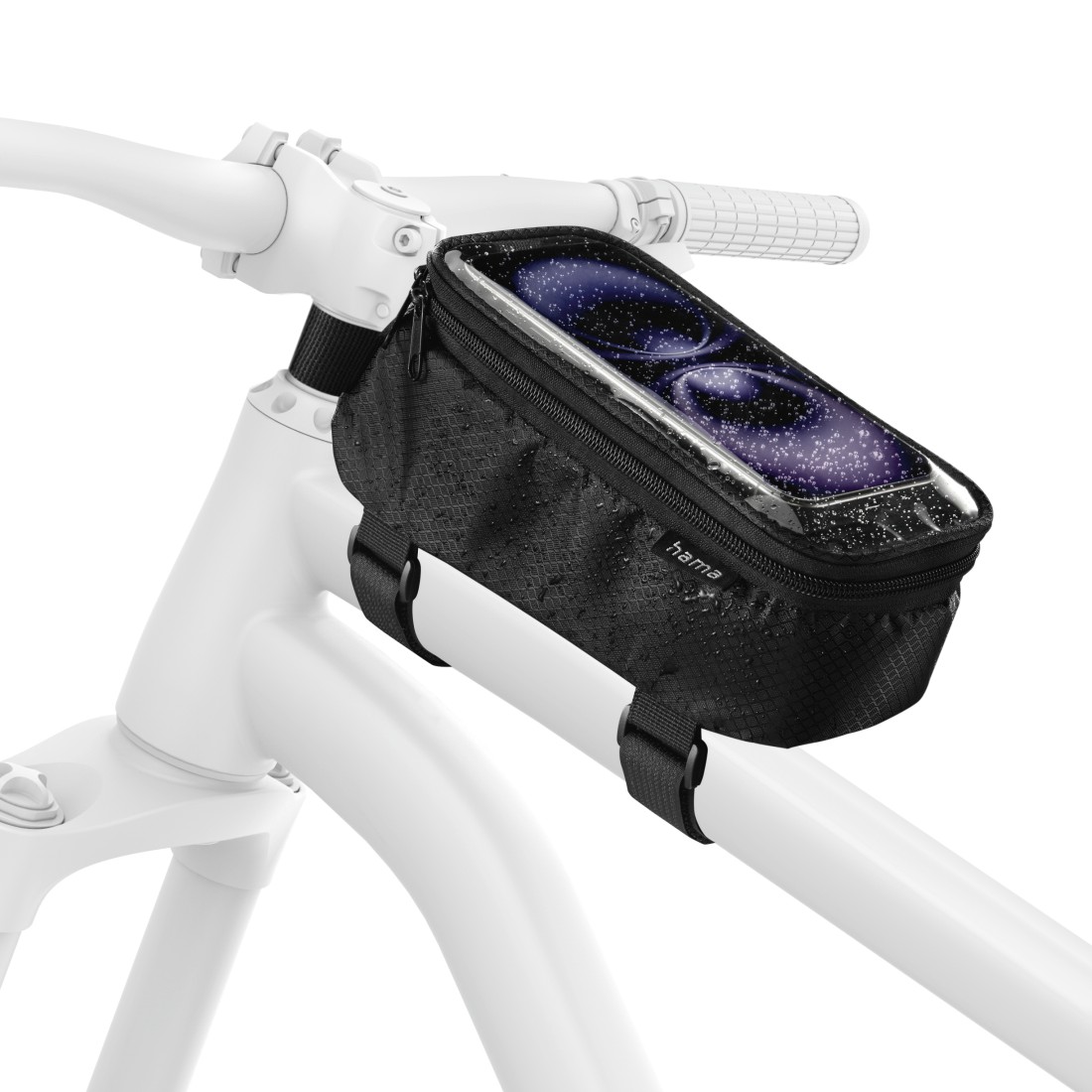 - Mobiltelefon, energiaszeletek, kulcsok és aprópénz mindig kéznél: strapabíró kerékpár táska a felső vázra rögzíthető, extra átlátszó rekesszel az okostelefon számára