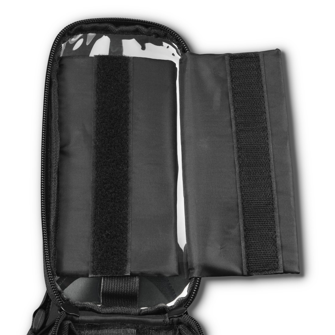 - Átlátszó érintőfólia a mobiltelefon-rekeszben: közvetlen rálátás és hozzáférés a mobiltelefonhoz – tökéletes megoldás az útvonal navigálásához anélkül, hogy ki kellene venni a okostelefont a kerékpáros táskából