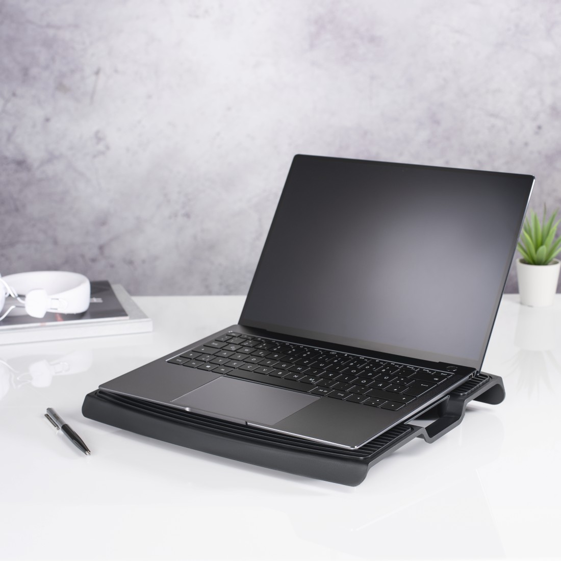 - A stabil támasztófelület megakadályozza a laptop túlmelegedését a hűtőn, mivel a szellőzőnyílások nem kerülnek elzáródásra